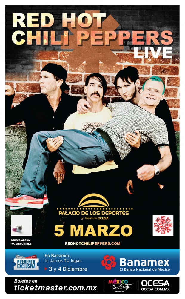 Se abrió una segunda y nueva fecha de RHCP en México, precisamente para el D.F. el 6 de marzo, un día después del show que ya conocíamos que iban a ofrecer. Para este caso la preventa se dará los días 13 y 14 de diciembre y la venta general a partir del 15 de diciembre.