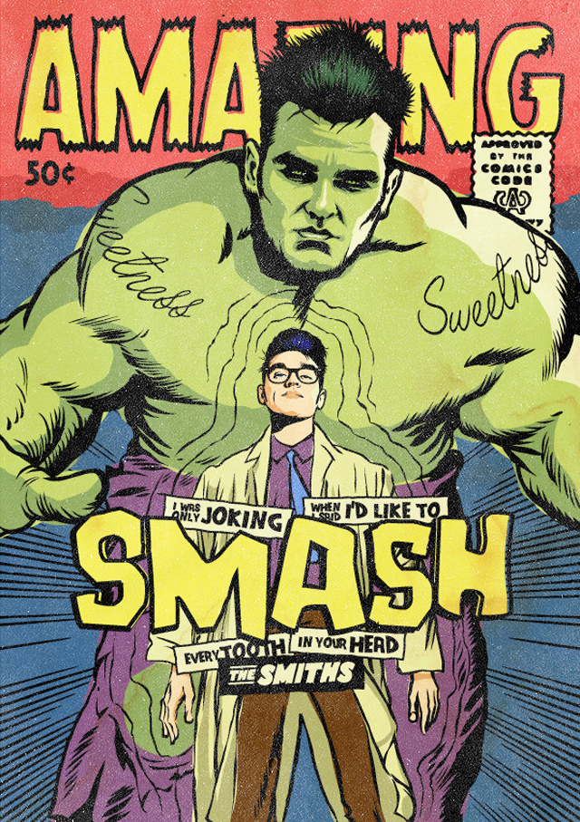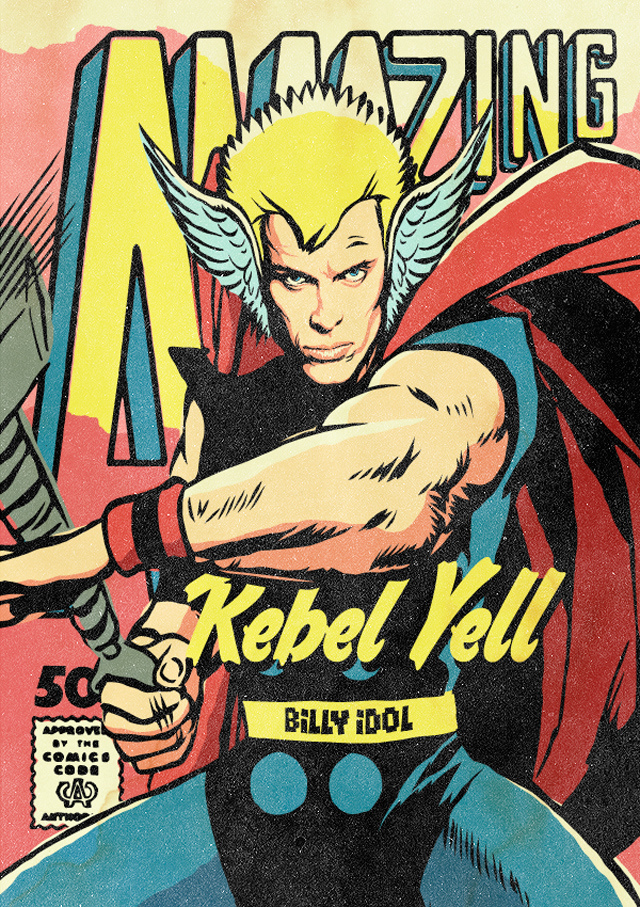 Hace un par de años el artista Butcher Billy causó gran sensación con un experimento gráfico que ilustraba a varios cantantes del rock y post-punk ochentero como superhéroes, inspirándose en algunas clásicas portadas de la DC. Este año Billy volvió a divertirse con estos mashups pero brincándose a la acera de enfrente, es decir, trabajando ahora con las portadas y superhéroes de Marvel.