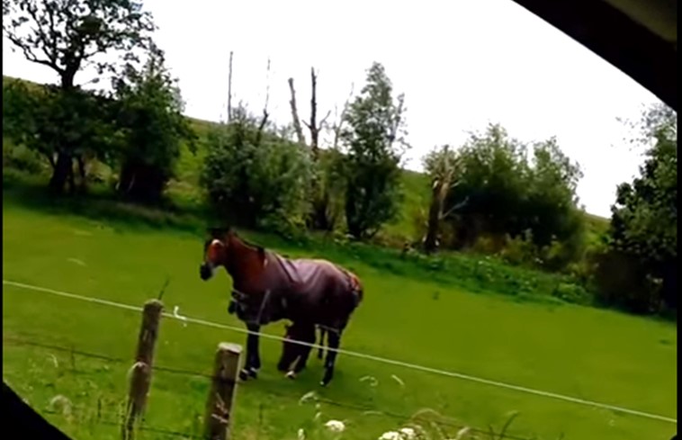 En alguna pradera de un país nórdico, un conductor que paseaba por la carretera escuchando a todo volumen la canción "I’m Broken" de Pantera tuvo que parar de lleno para disfrutar el alucine de estos dos caballos que parecían ser más fans que él.