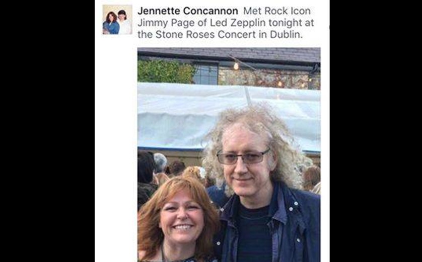 Presuntamente la mujer de nombre Jennette Concannon habría confundido al mismísimo Kevin Shields de My Bloody Valentine con Page, y en una foto que aparentemente subió desde sus redes sociales y comenzó a circular por varios grupos de melómanos que resaltaron lo gracioso de la situación, se le leía bastante emocionada por haber "conocido" a su ídolo. A esto le llamamos un Epic Fail, ¿a poco no?