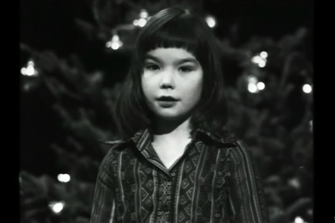 Es fácil entonces suponer que antes de su primer álbum oficial (homónimo, 1977, con 12 años de edad) la pequeña Björk ya tenía algo de recorrido por los teatros, radio emisoras y televisoras de su país, participando en diferentes proyectos artísticos y culturales. Prueba de ello es el siguiente videoclip que compartiremos, que circula en YouTube desde hace tiempo, en donde la podemos observar a sus 11 años de edad recitando con su tierna voz un Cuento de Navidad en un programa de televisión islandesa.