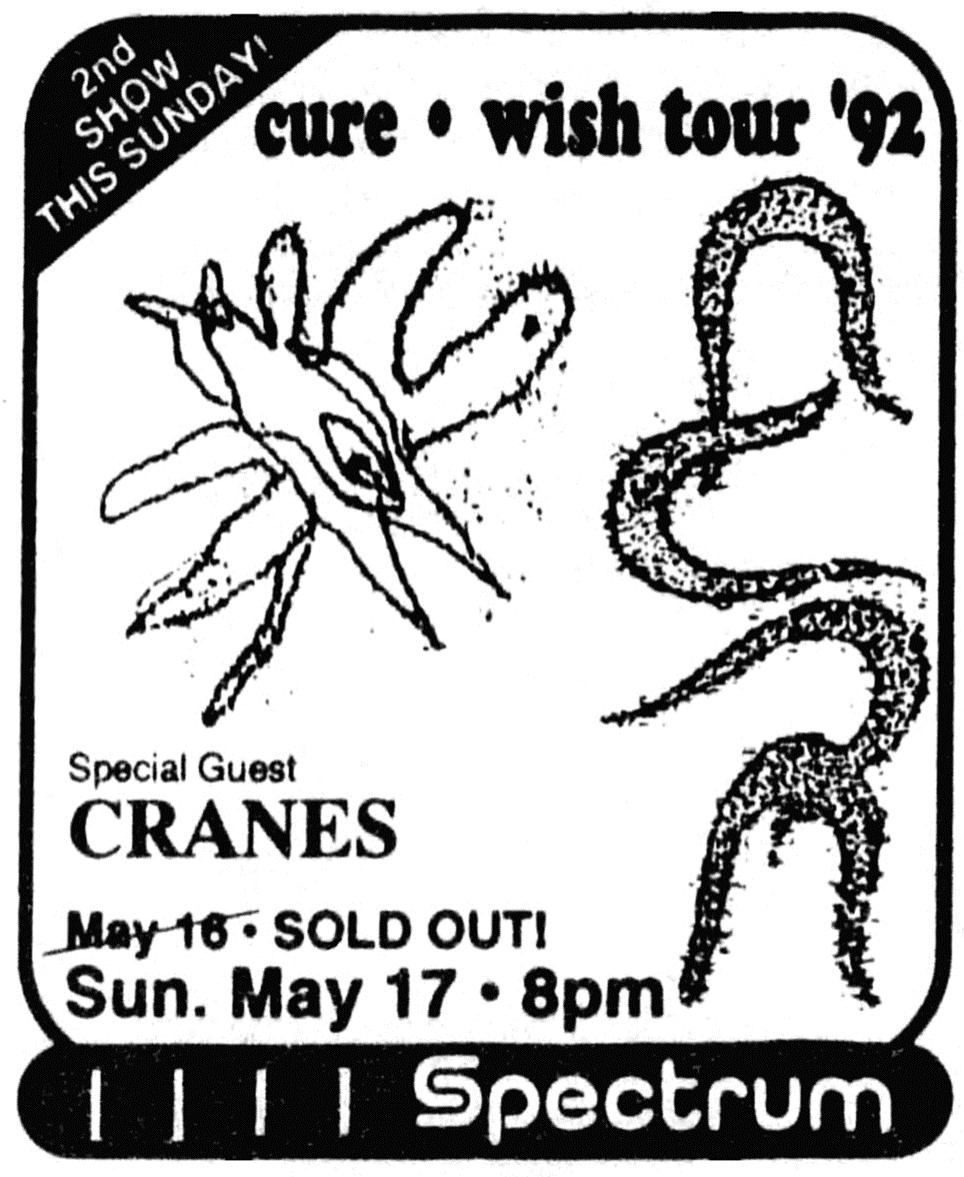 Así entonces, la maquinaría se echó a andar y la primera noche que The Cure y Cranes tocaron juntos fue un 23 de mayo del ’92, en Pittsburg. A partir de ahí los miembros de ambos grupos hicieron buenas migas y convivían igual dentro y fuera de camerinos, compartiendo incluso borracheras con champagne en los hoteles, como también Francombe platicó en diversas entrevistas de aquellos días. Dijo, incluso, que el mismo Smith una vez le confesó que la razón principal de haber decidido invitarlos en este tour era precisamente alimentar la convivencia y romper la monotonía del día a día entre los miembros de The Cure. Algo así como una terapia, vaya.