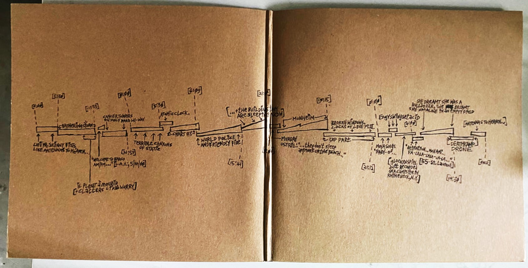 Después de tantos años, no hay mucho que acá podamos agregar al cúmulo de testimonios y expresiones que han elevado a "Sleep" a un grado de culto para los amantes de los sonidos más teatrales y delirantes de la escena alternativa. Basta decir -sin ánimos de hacer spoiler a algún infeliz que todavía no la haya escuchado- que esta titánica canción se divide en tres capítulos interconectados: "Murray Ostril: ‘They Don’t Sleep Anymore on the Beach…'", "Monheim" y "Broken Windows, Locks of Love Pt. III", que, modificando intensidades y decibeles, cada uno a su manera alcanza distintos picos creativos y emocionales, como para mantener al escucha en lo más alto, para lograr la contemplación panorámica de ese siniestro escenario donde se ha mudado el inconsciente, alimentándose de la exaltación, la pasión y el desvarío.